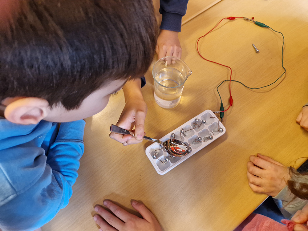 Vor dem Umwelttag konnten die Kinder aus vielen Angeboten ihre Favoriten auswählen. Dann wurden Gruppen eingeteilt und am Umwelttag wurde dann einmal in ganz anderer Zusammensetzung gebastelt, gearbeitet, gelernt. Alle Sinne wurden bedient: Es gab viele technische und sachkundliche Projekte, aber auch Kunst, Bewegung und etwas für den Gaumen. Energiedetektive suchten die Stromfresser, im Schulgarten ging es nochmal durchs Gemüse und im Kunstraum entstanden aus Müll fantastische Energiewesen.