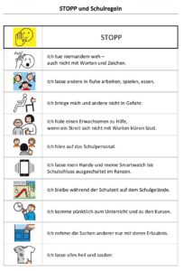 Hier finden Sie Einzelheiten zu den Schulregeln (.pdf) und der Handlungskette.